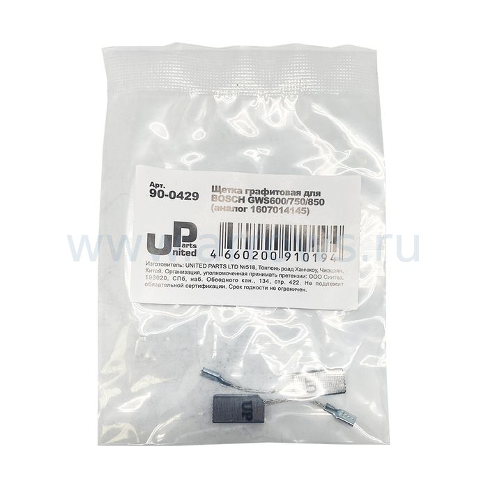 Щетка графитовая UNITED PARTS для BOSCH GWS600/750/850 (аналог 1607014145) 5х8х15мм АВТОСТОП - цена, фото, технические характеристики