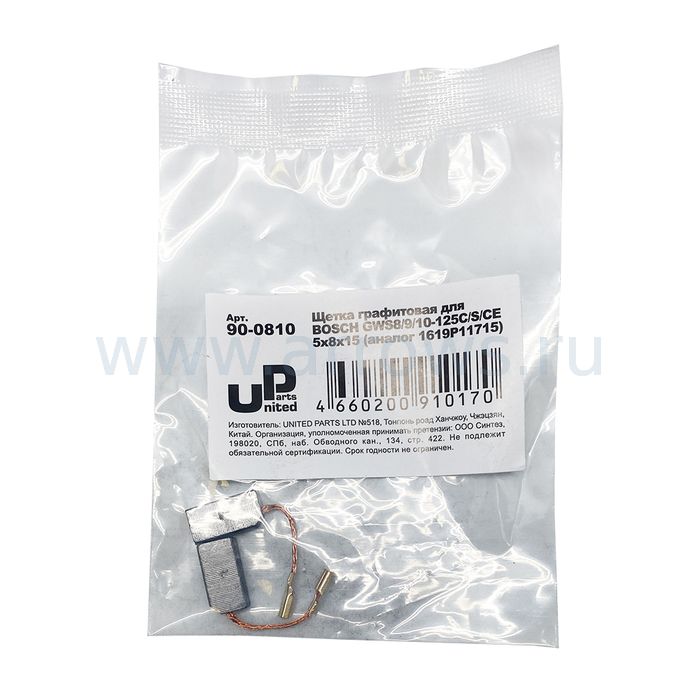 Щетка графитовая UNITED PARTS для BOSCH GWS8/9/10-125C/S/CE (аналог 1619P11715) 5х8х15мм --> 90-0429 - цена, фото, технические характеристики