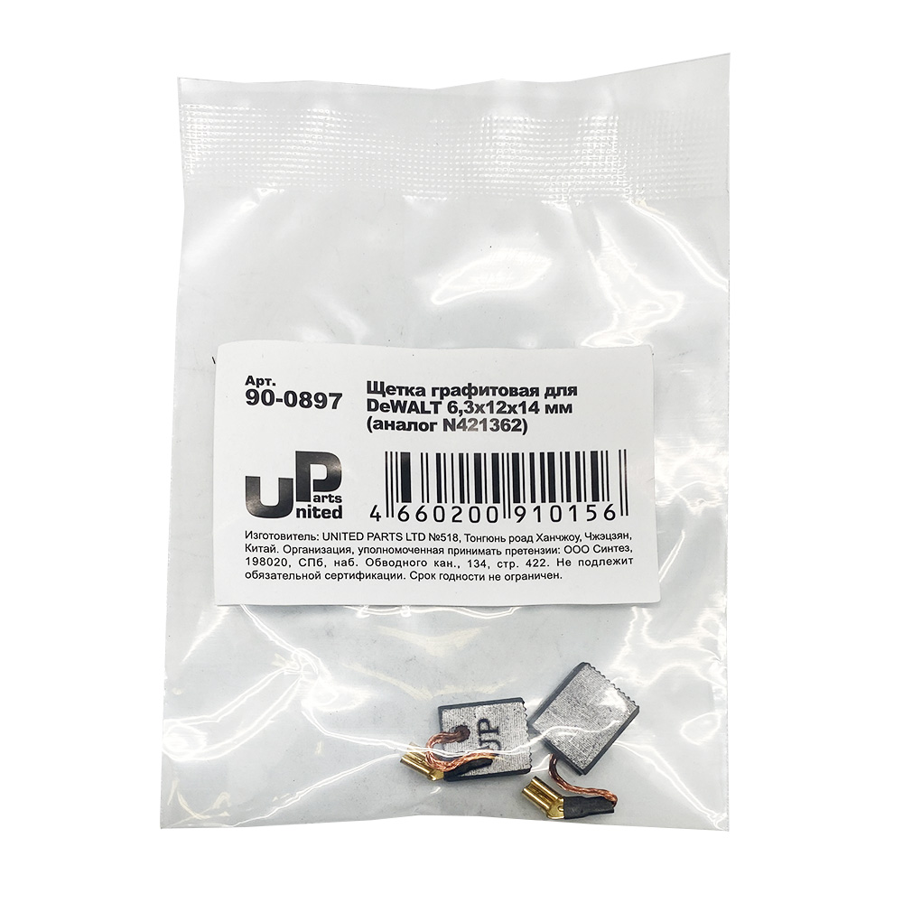 Щетка графитовая UNITED PARTS для DeWALT (аналог N421362/489059/N447012/NA143119/N442427/NA121924/NA121485) 6,3х12х14мм - цена, фото, технические характеристики