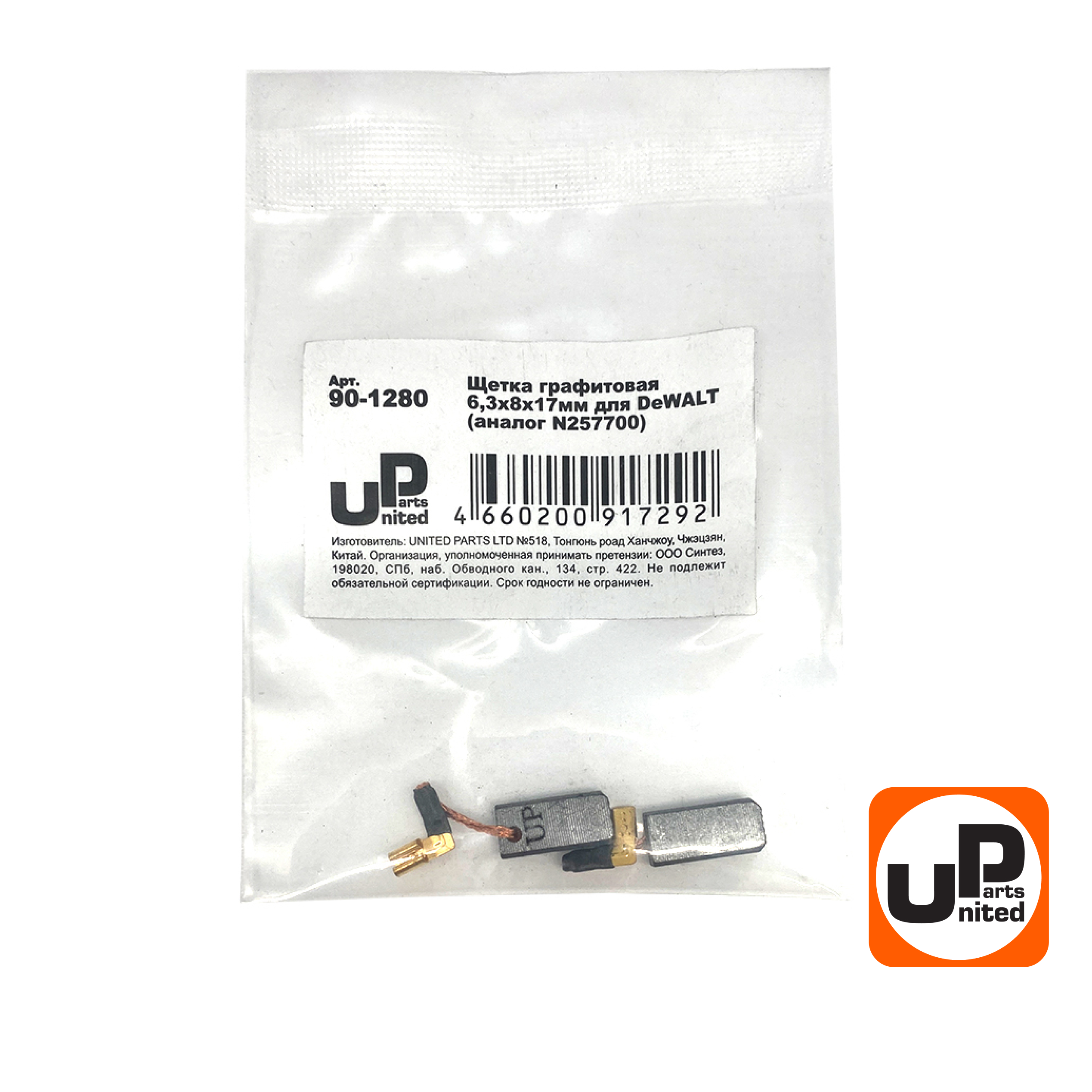 Щетка графитовая UNITED PARTS для DeWALT (аналог N257700)  6,3х8х17мм АВТОСТОП