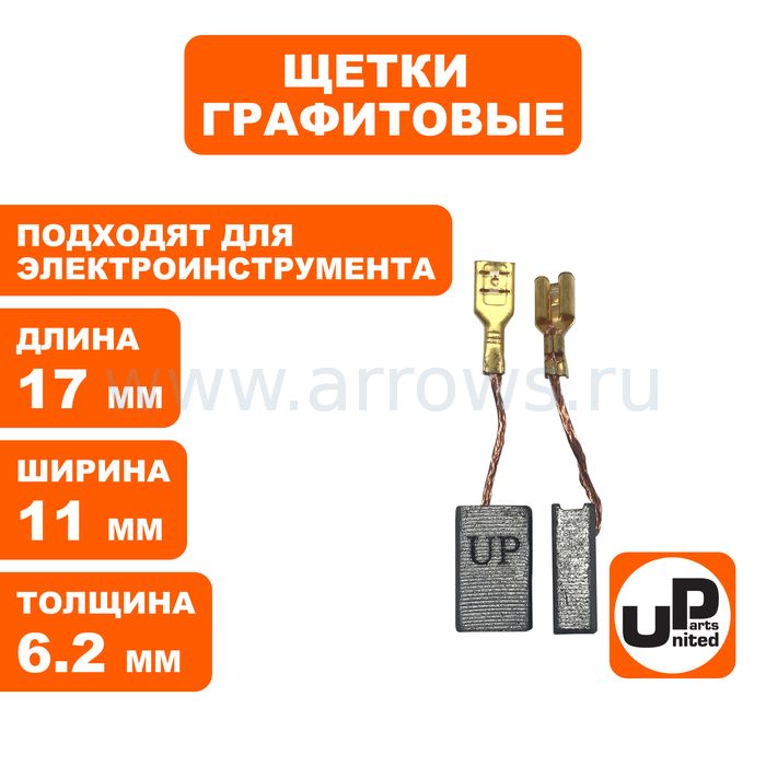 Щетка графитовая UNITED PARTS для эл. инструмента 6,2х11х17мм АВТОСТОП 6,2х11х17мм АВТОСТОП