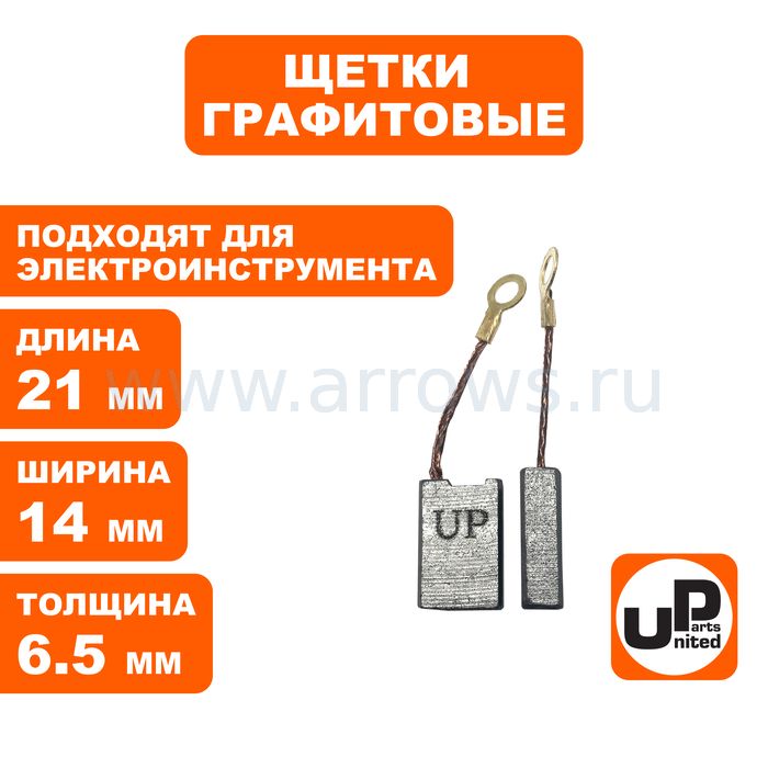 Щетка графитовая UNITED PARTS для эл. инструмента 6,5х14х21мм АВТОСТОП - цена, фото, технические характеристики