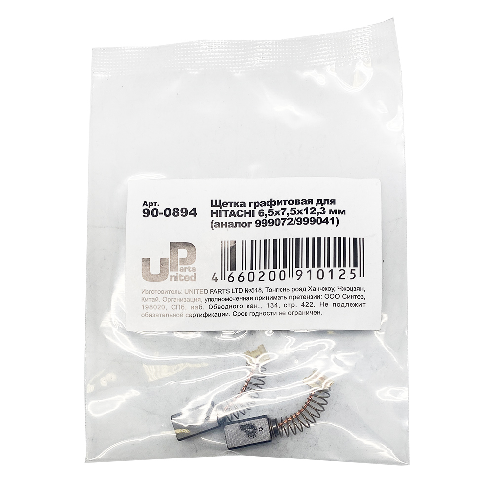 Щетка графитовая UNITED PARTS для HITACHI (аналог 999072/999041)  6,5х7,5х12,3мм АВТОСТОП
