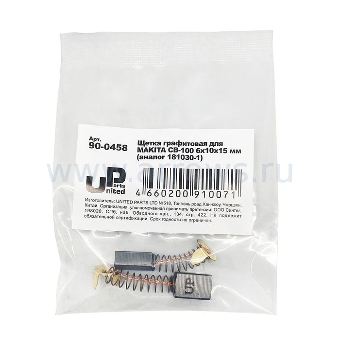 Щетка графитовая UNITED PARTS для MAKITA СВ-100 (аналог 181030-1) 6х10х15мм - цена, фото, технические характеристики