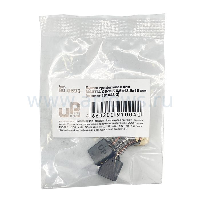 Щетка графитовая UNITED PARTS для MAKITA СВ-155 (аналог 181048-2) 6,5х13,5х18 мм АВТОСТОП - цена, фото, технические характеристики