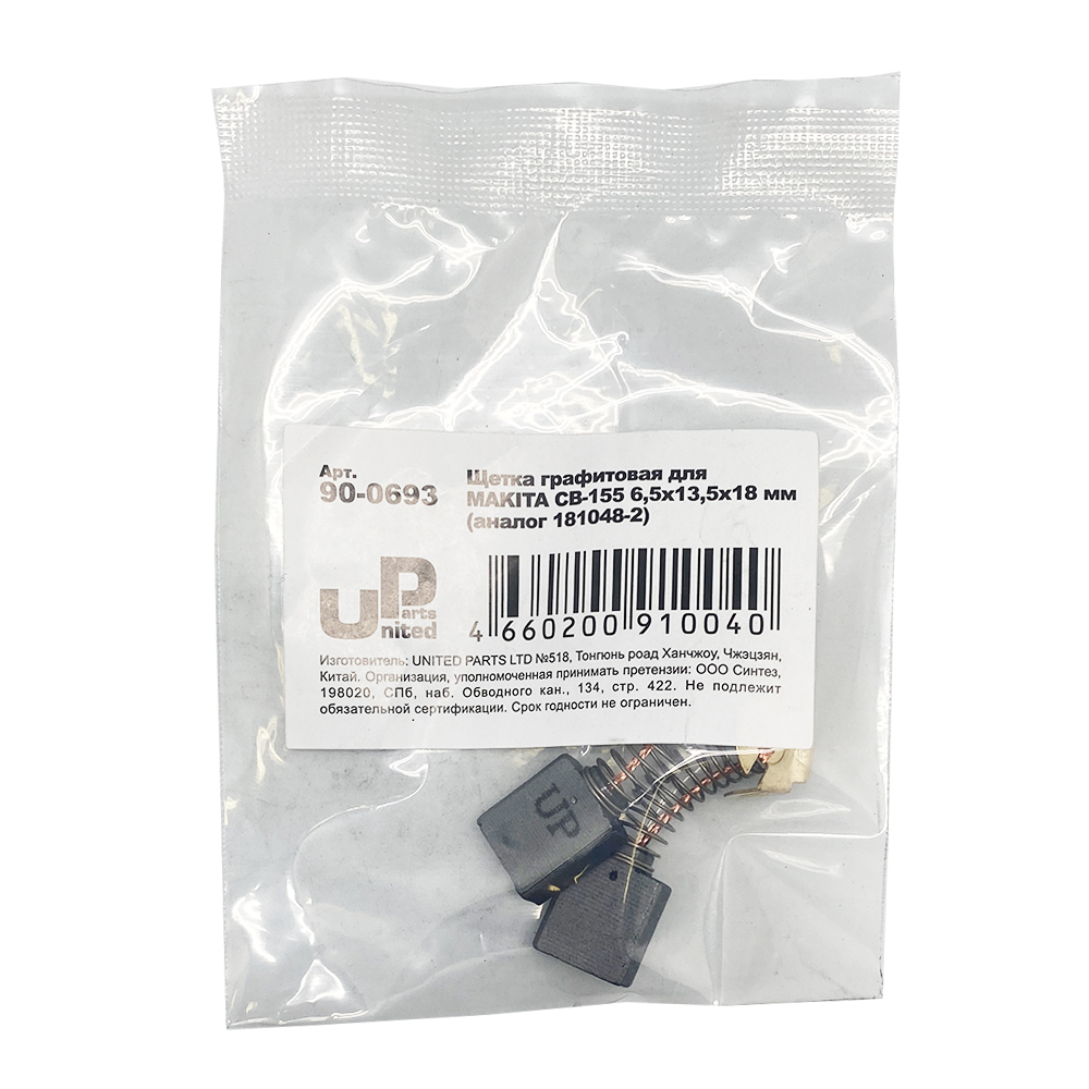 Щетка графитовая UNITED PARTS для MAKITA СВ-155 (аналог 181048-2)  6,5х13,5х18 мм АВТОСТОП