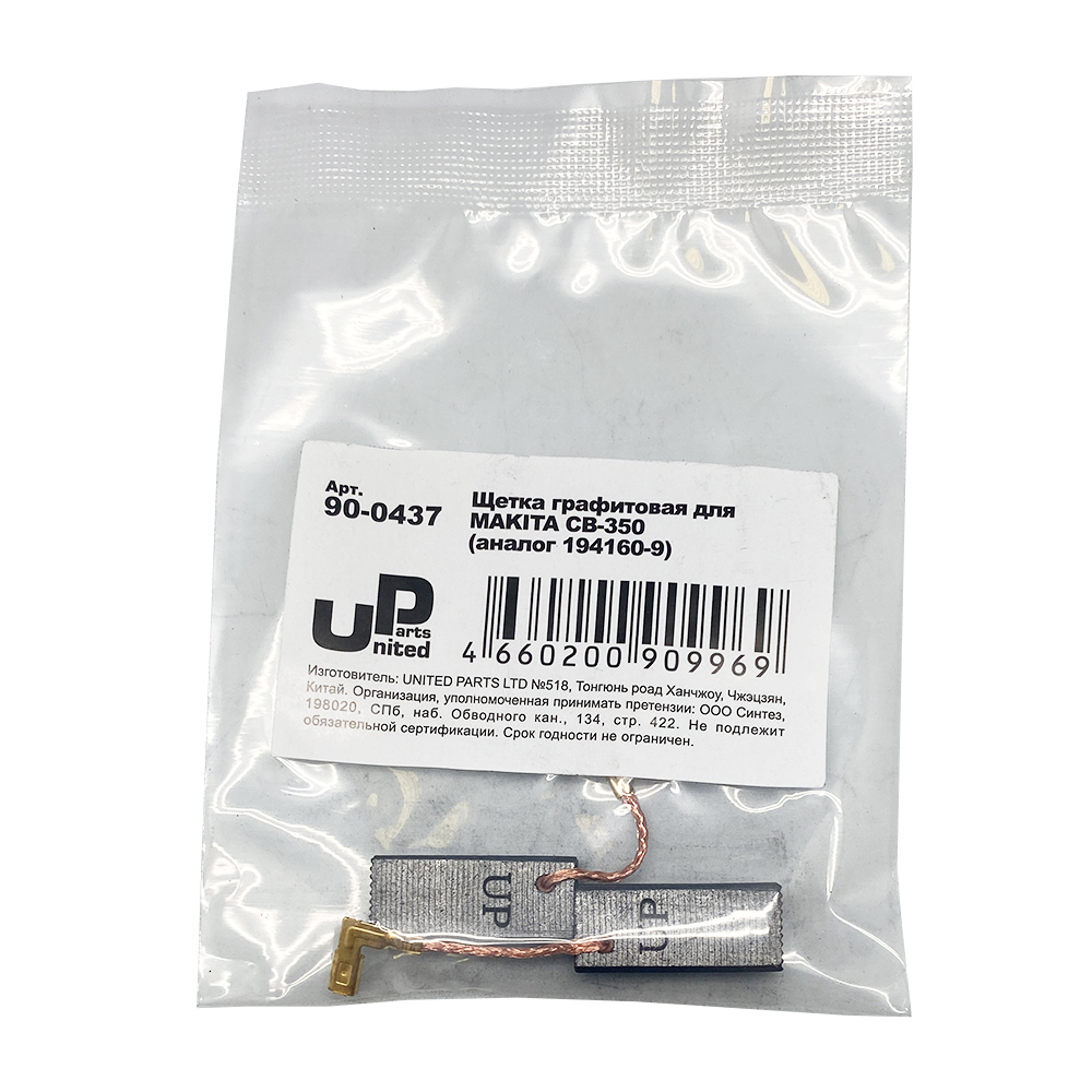 Щетка графитовая UNITED PARTS для MAKITA СВ-350 (аналог 194160-9) 6,5х11х25,2мм (аналог 194160-9) 6,5х11х25,2мм