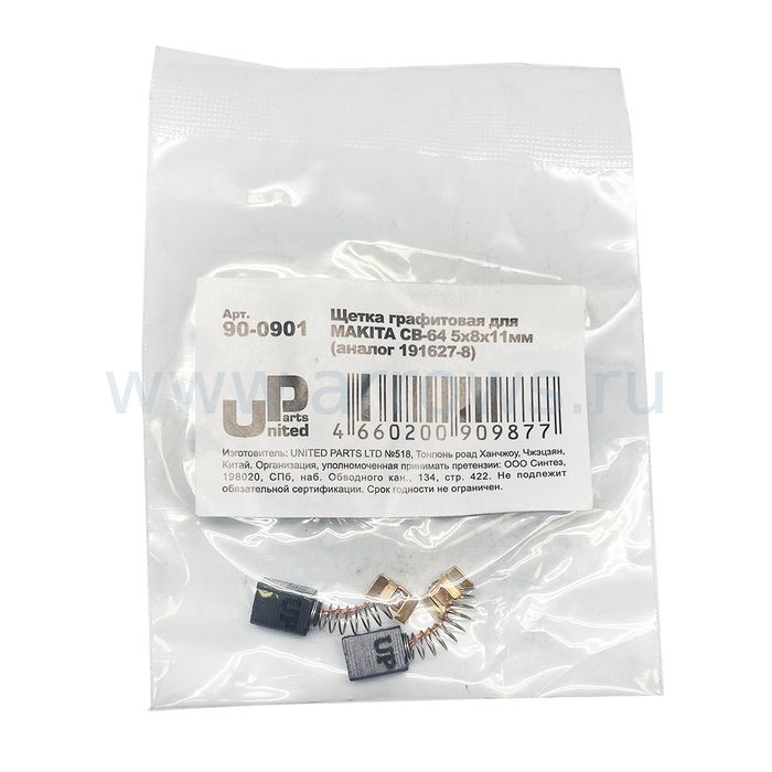 Щетка графитовая UNITED PARTS для MAKITA СВ-64 (аналог 191627-8) 5х8х11мм - цена, фото, технические характеристики