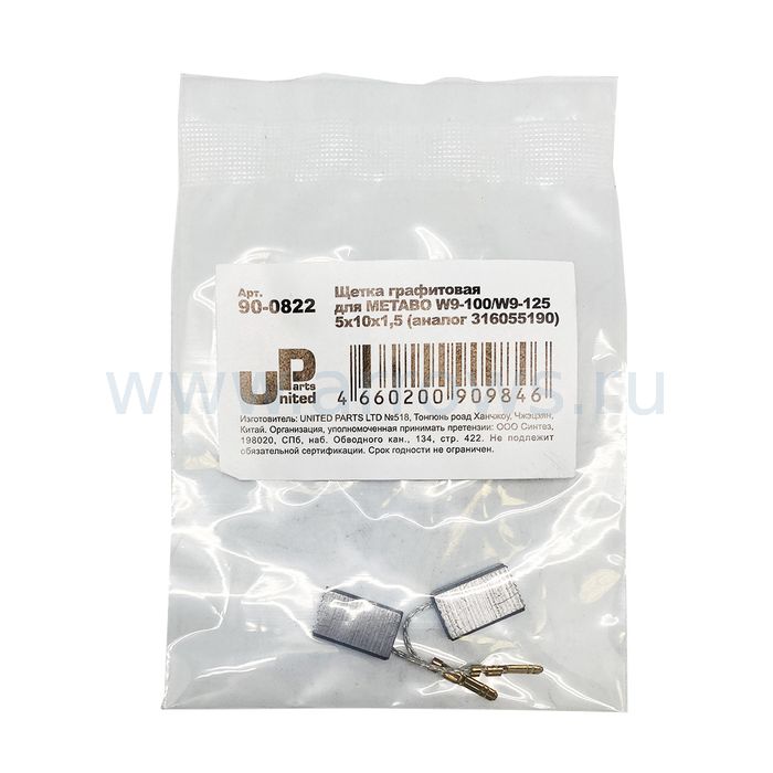 Щетка графитовая UNITED PARTS для METABO W9-100/W9-125 (аналог 316055190) 5х10х15,5мм АВТОСТОП - цена, фото, технические характеристики