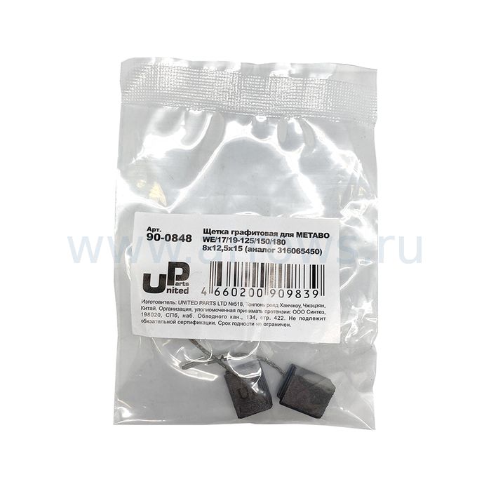 Щетка графитовая UNITED PARTS для METABO WE/17/19-125/150/180 (аналог 316065450) 8х12,5х15мм (аналог 316065450) 8х12,5х15мм