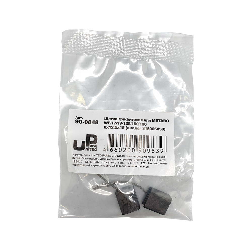 Щетка графитовая UNITED PARTS для METABO WE/17/19-125/150/180 (аналог 316065450) 8х12,5х15мм - цена, фото, технические характеристики
