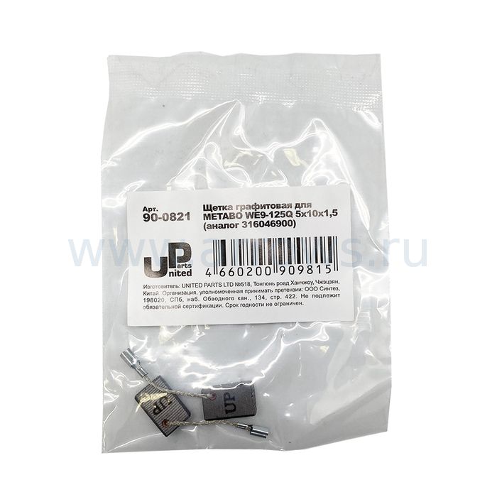 Щетка графитовая UNITED PARTS для METABO W750-115/W750-125/WE9-125Q (аналог 316046900/316098370) 5х10х15,5мм АВТОСТОП - цена, фото, технические характеристики