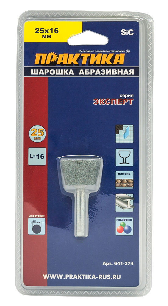 Шарошка абразивная ПРАКТИКА карбид кремния, трапециевидная 25х16 мм, хвост 6 мм, блистер (641-374) - цена, фото, технические характеристики