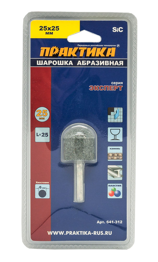 Шарошка абразивная ПРАКТИКА карбид кремния, закругленная 25х25 мм, хвост 6 мм, блистер (641-312) - цена, фото, технические характеристики