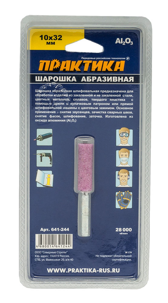 Шарошка абразивная ПРАКТИКА оксид алюминия, цилиндрическая 10х32 мм, хвост 6 мм, блистер (641-244) - цена, фото, технические характеристики