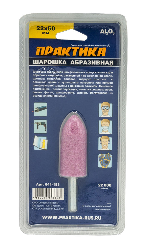 Шарошка абразивная ПРАКТИКА оксид алюминия, цилиндрическая заостренная 22х50 мм, хвост 6 м (641-183) - цена, фото, технические характеристики