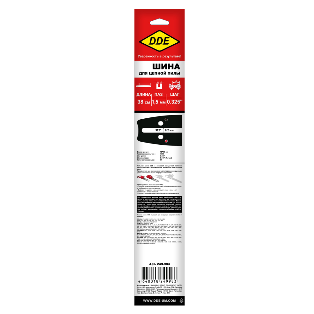 Шина пилы цепной сварная DDE 15"/ 38 см .325"-1,5-64 зв (для цепи 21) (Hus 55,254,257,350,359,357,4 - цена, фото, технические характеристики
