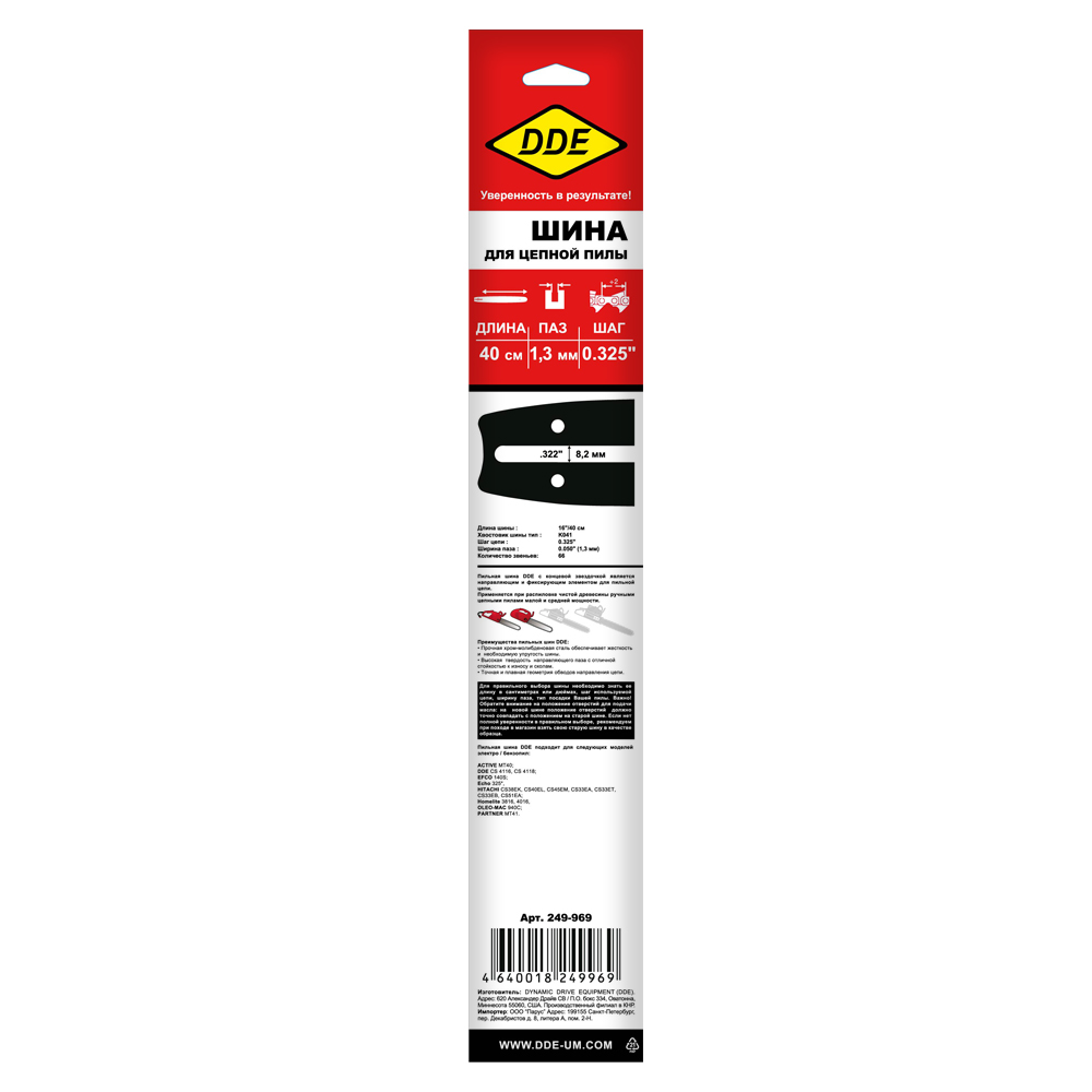 Шина пилы цепной сварная DDE 16"/ 40 см .325"-1,3-66 зв (для цепи 20, 95) (Echo 325", DDE 4116,4618) (160MLBK041) - цена, фото, технические характеристики