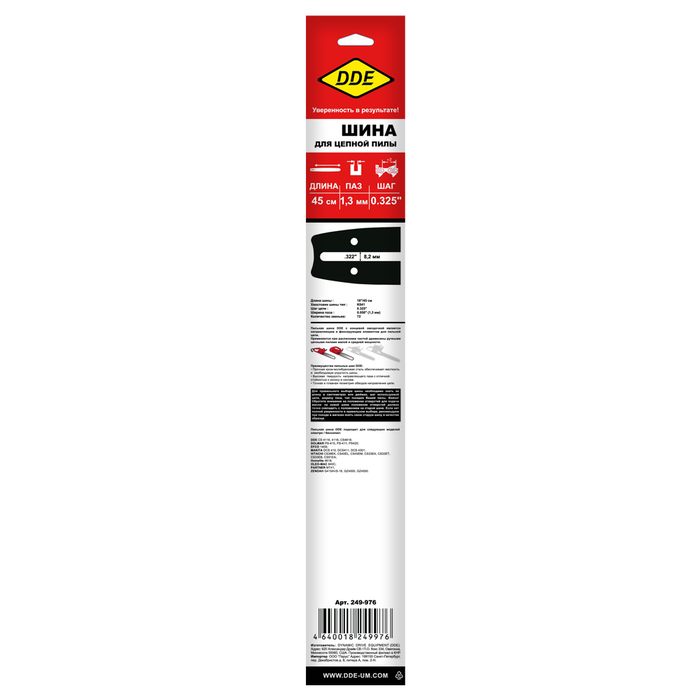 Шина пилы цепной сварная DDE 18"/ 45 см .325"-1,3-72 зв (для цепи 20, 95) (Homelite 4518, DDE CS46 - цена, фото, технические характеристики