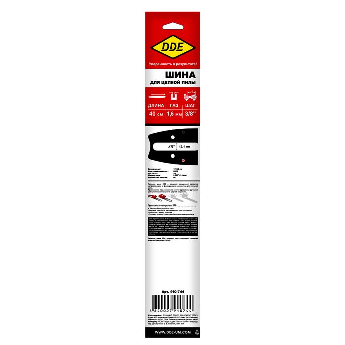 Шина пилы цепной сварная DDE 16"/ 40 см 3/8"-1,6-60 зв (для цепи 75DP/LP)(163SLHD025) проф. - цена, фото, технические характеристики