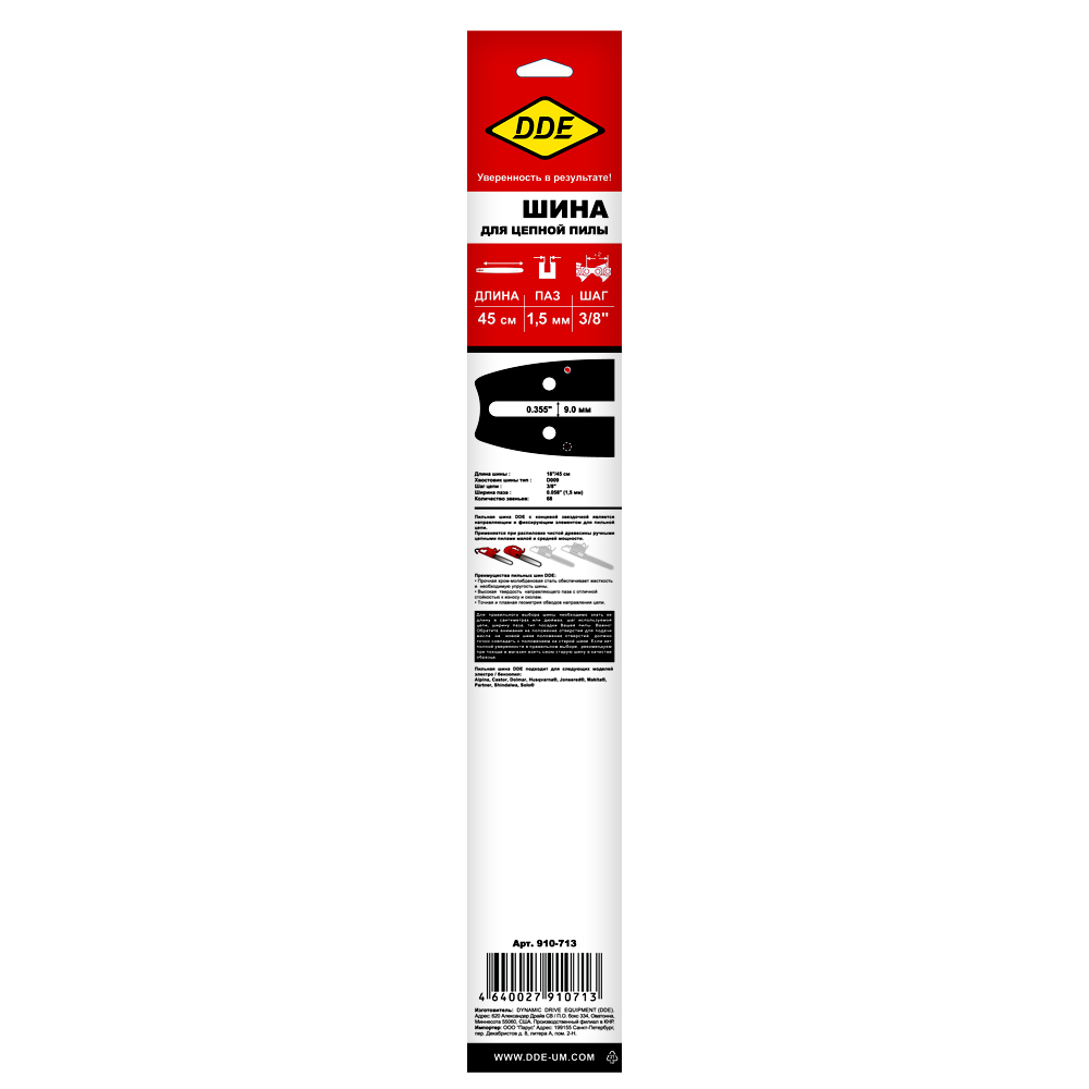 Шина пилы цепной сварная DDE 18"/ 45 см 3/8"-1,5-68 зв (для цепи 73) (188SLHD009, H268,272,365,372) - цена, фото, технические характеристики