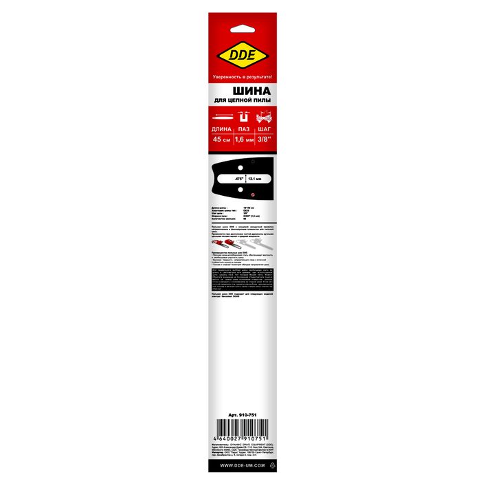 Шина пилы цепной сварная DDE 18"/ 45 см 3/8"-1,6-66 зв (для цепи 75DP/LP)(183SLHD025) - цена, фото, технические характеристики