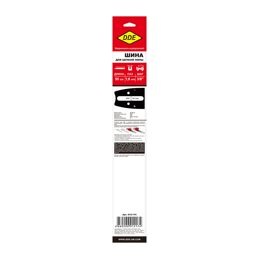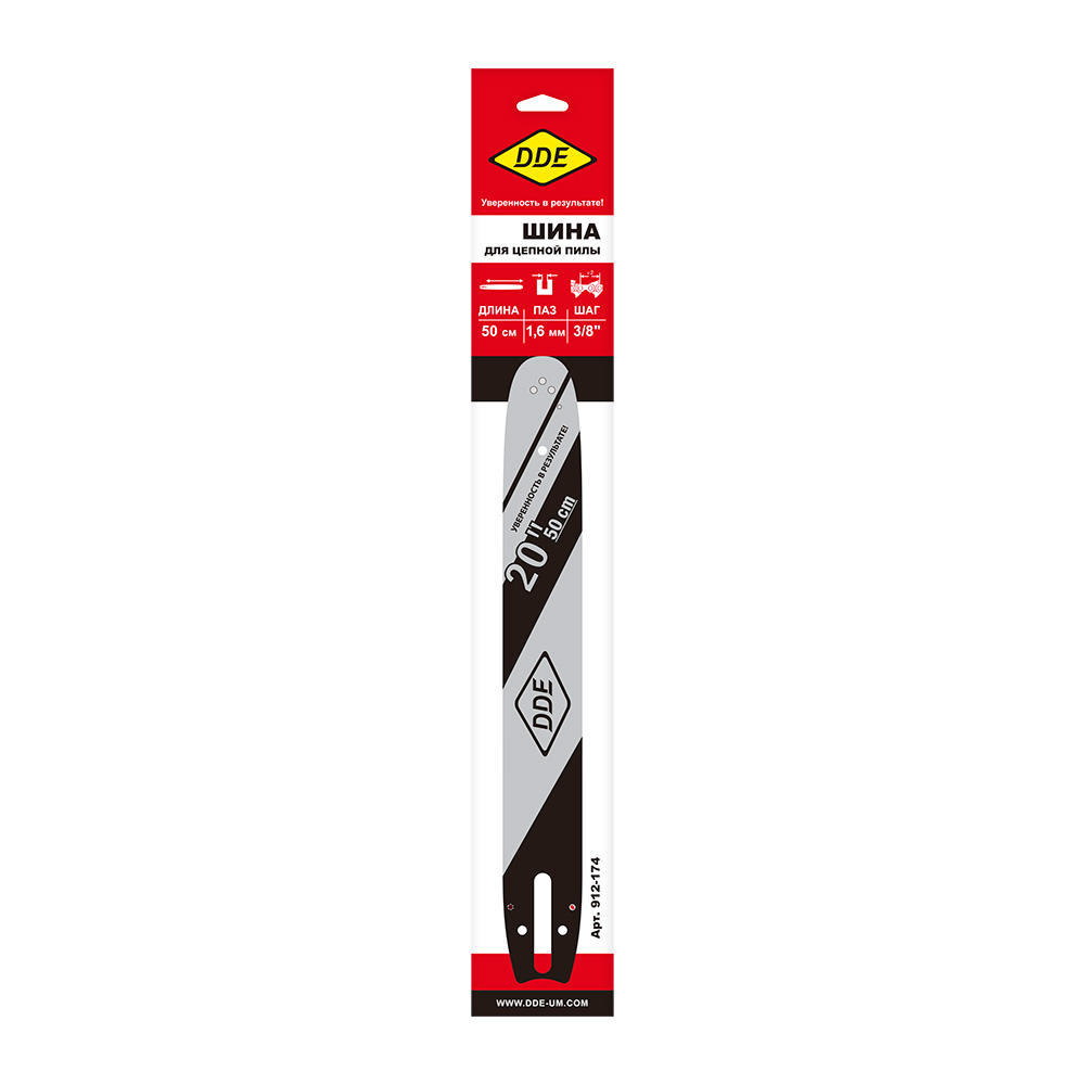 Шина пилы цепной сварная DDE 20"/ 50 см 3/8"-1,6-72 зв (для цепи 75DP/LP)(203SLHD025) - цена, фото, технические характеристики
