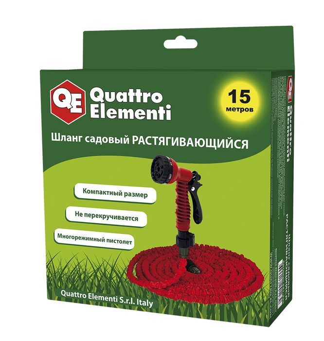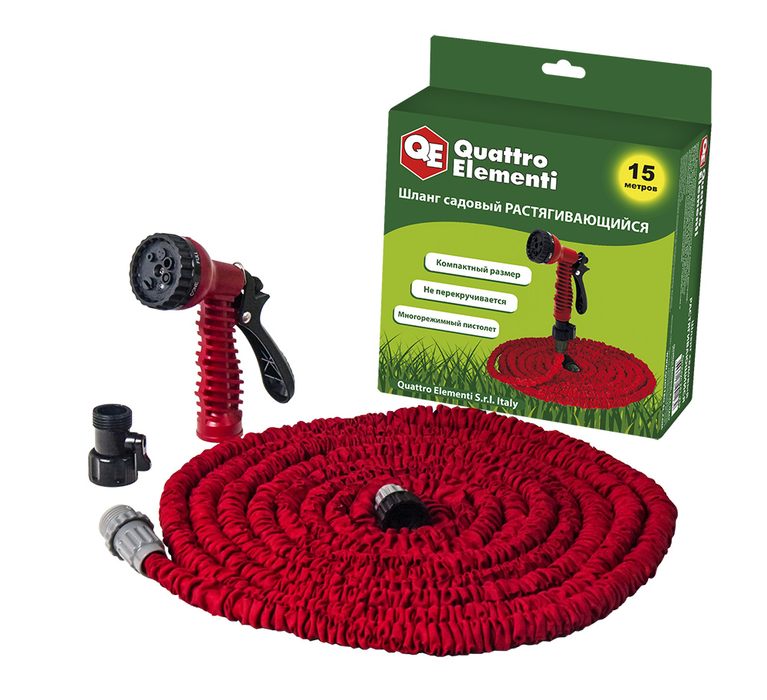 Шланг для воды растягивающийся QUATTRO ELEMENTI 15 метров, латекс, + Пистолет поливочный (241-239) - цена, фото, технические характеристики