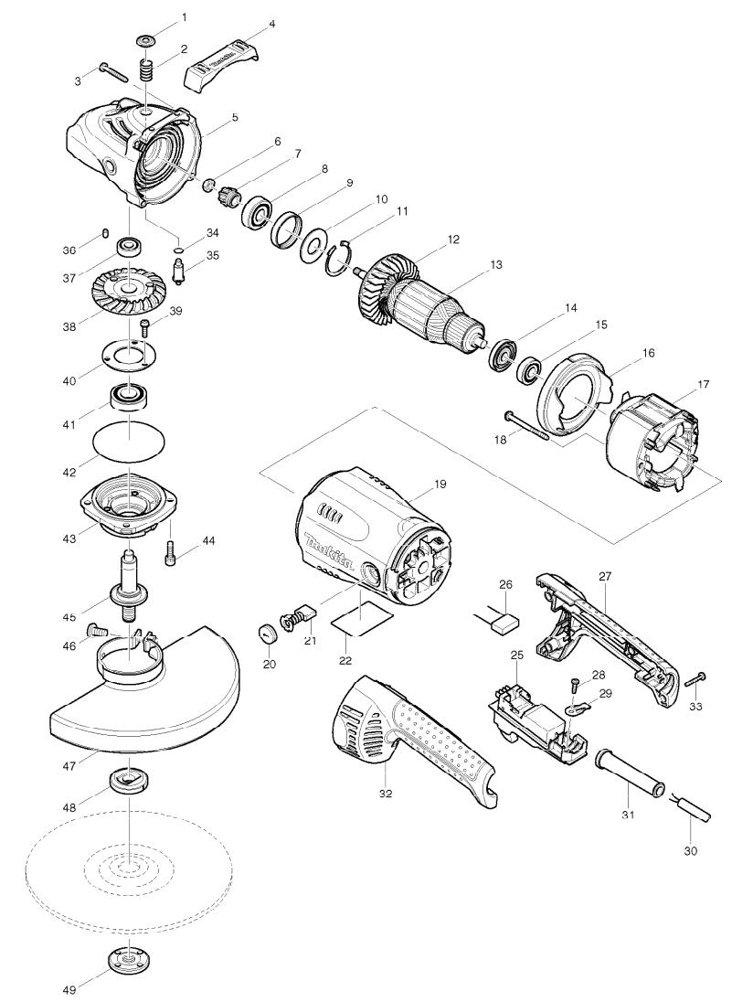 Шлифмашина угловая MAKITA GA 9020 (230 мм, 2200 Вт, 6600 об/мин) - цена, фото, технические характеристики