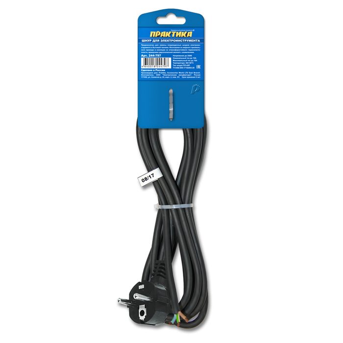 Шнур сетевой ПРАКТИКА ПГА-ВП 3*1,5 1,5 метра (244-797) - цена, фото, технические характеристики