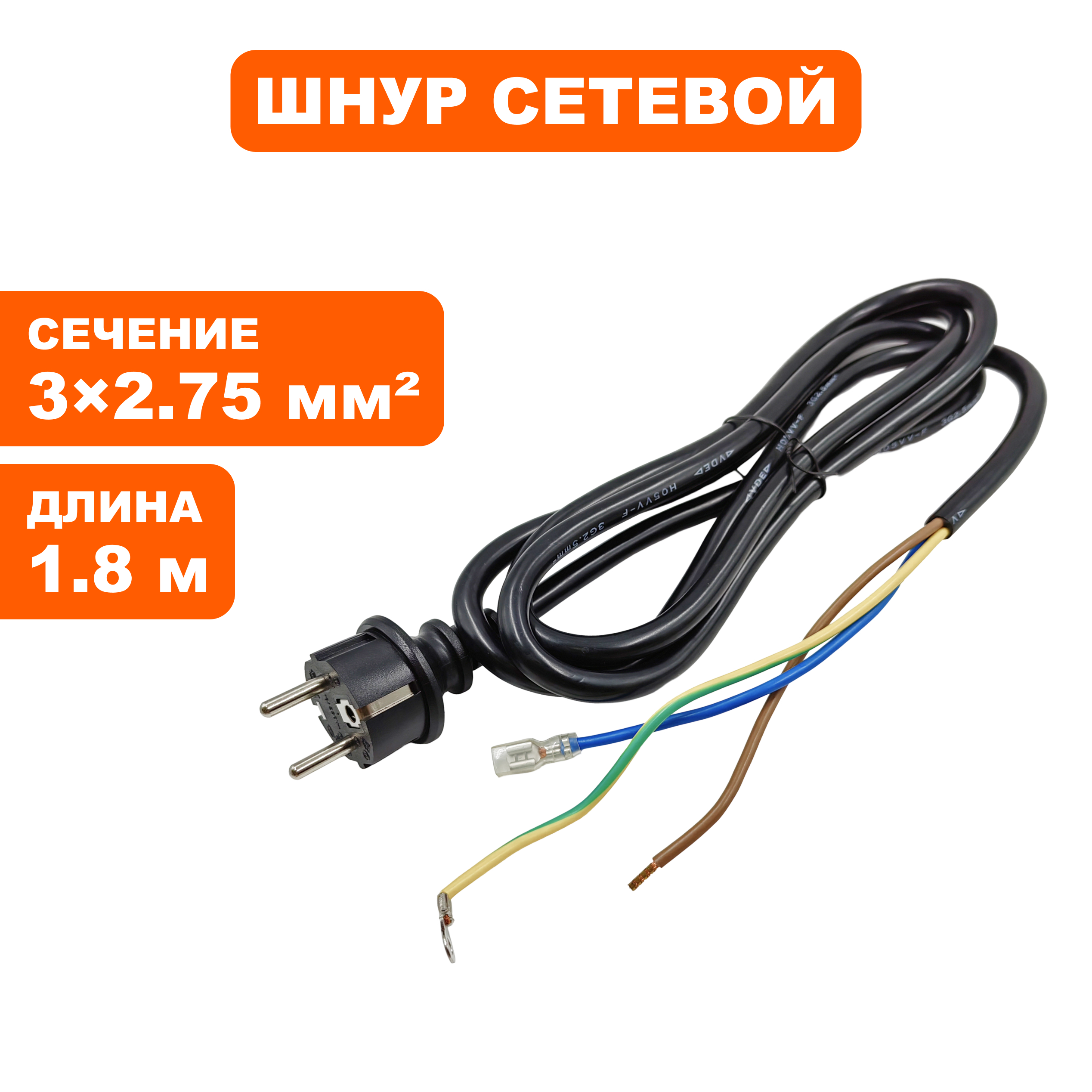 Шнур сетевой QUATTRO ELEMENTI i-Mig 195/235 3х2.5 мм / 1,8 м / ф 9,8 мм - цена, фото, технические характеристики
