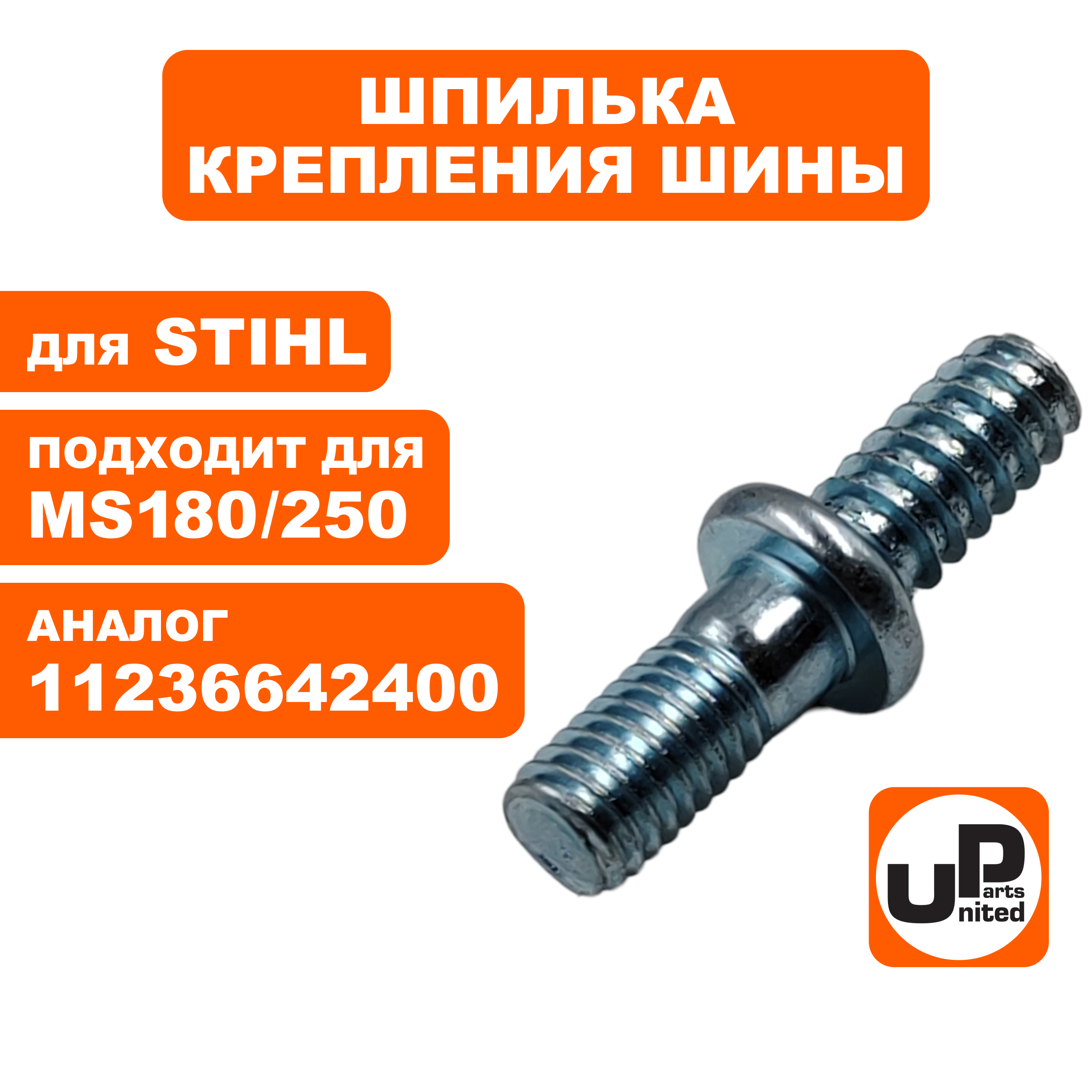 Шпилька крепления шины UNITED PARTS для STIHL MS180/250 (аналог 11236642400) - цена, фото, технические характеристики