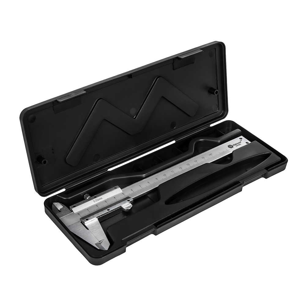 нониусный, ШЦ-1, открытого типа, 150 мм, точность 0,02 мм, глубиномер, углер. сталь, кейс (919-821)