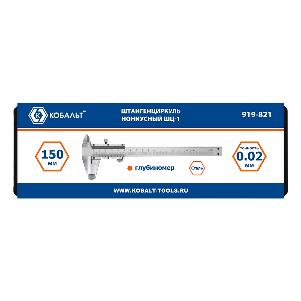 Штангенциркуль КОБАЛЬТ нониусный, ШЦ-1, открытого типа, 150 мм, точность 0,02 мм, глубиномер, углер. сталь, кейс (919-821) - цена, фото, технические характеристики
