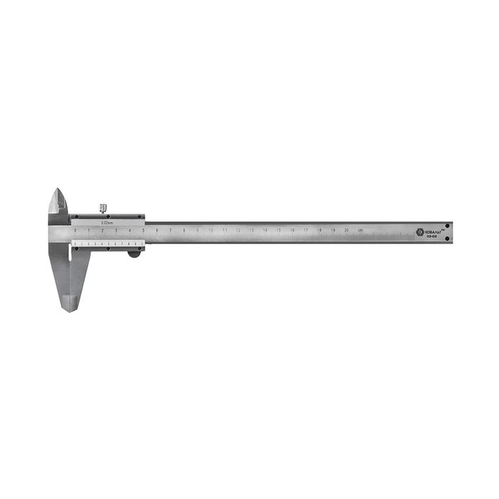 нониусный, ШЦ-1, открытого типа, МОНОБЛОЧНЫЙ, 200 мм, точность 0,02 мм, глубиномер, самоблокирующийся, кейс (919-869)