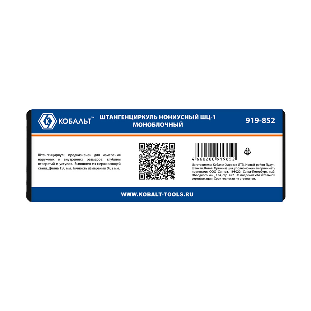 Штангенциркуль КОБАЛЬТ нониусный, ШЦ-1, открытого типа, МОНОБЛОЧНЫЙ, 150 мм, точность 0,02 мм, глубиномер, самоблокирующийся, кейс (919-852) - цена, фото, технические характеристики