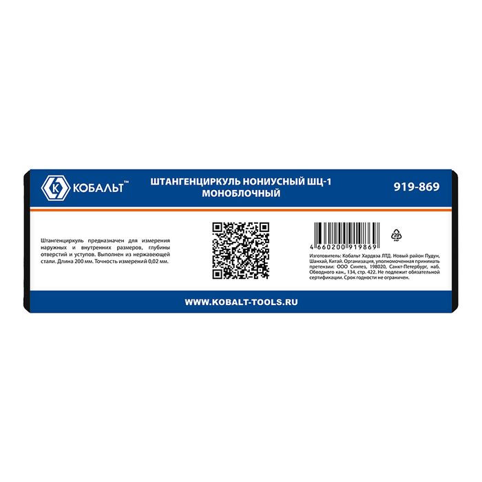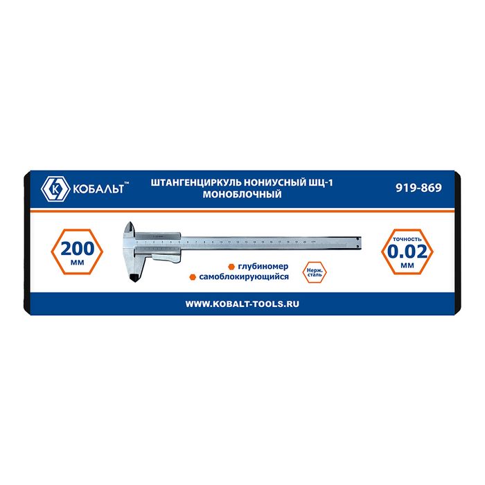 Штангенциркуль нониусный КОБАЛЬТ ШЦ-1, открытого типа, МОНОБЛОЧНЫЙ, 200 мм, точность 0,02 мм, глубиномер, самоблокирующийся, кейс (919-869) - цена, фото, технические характеристики