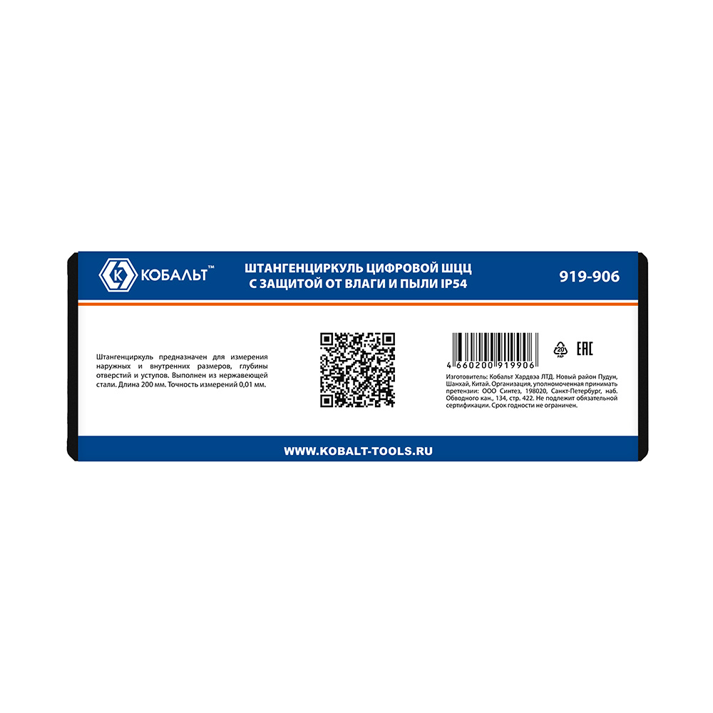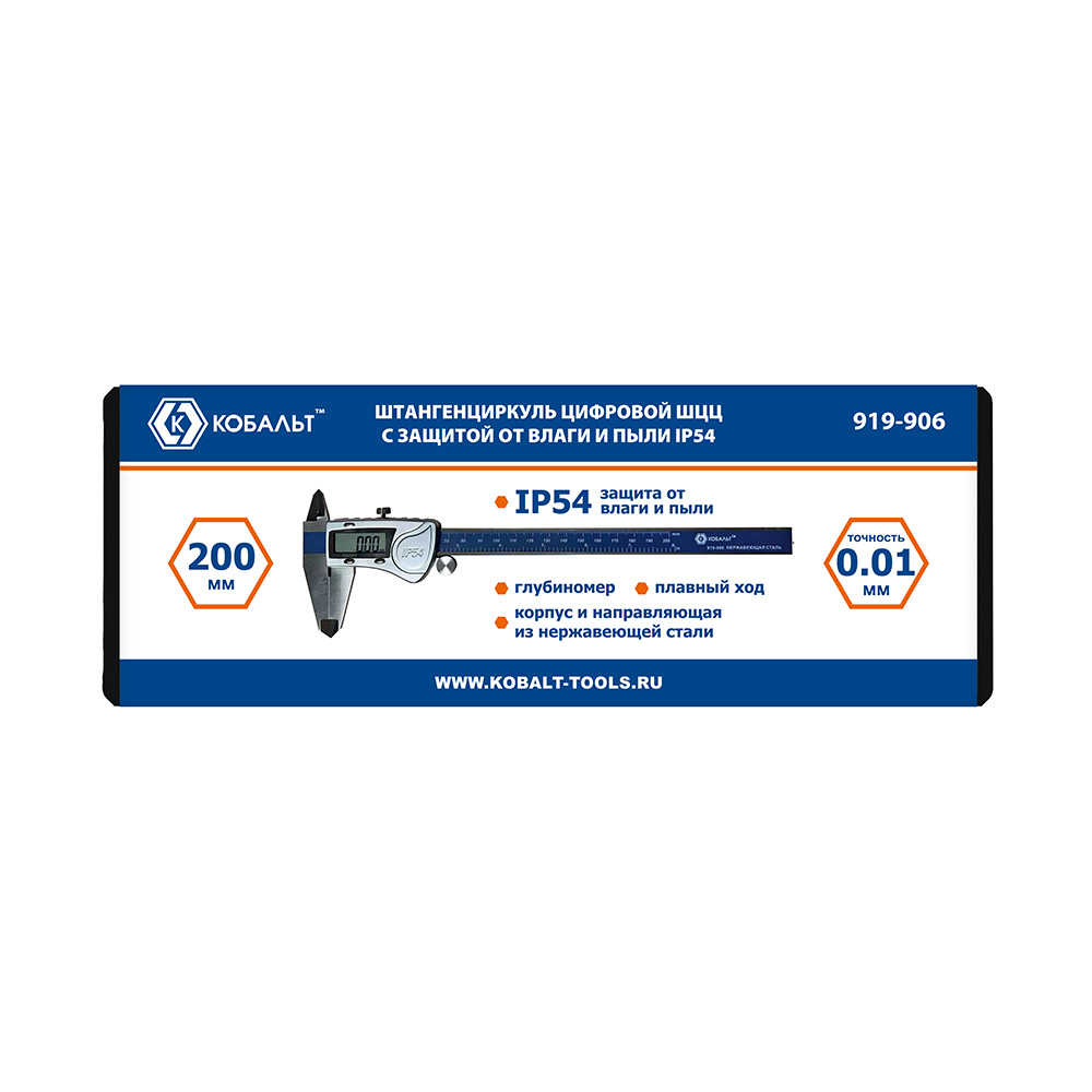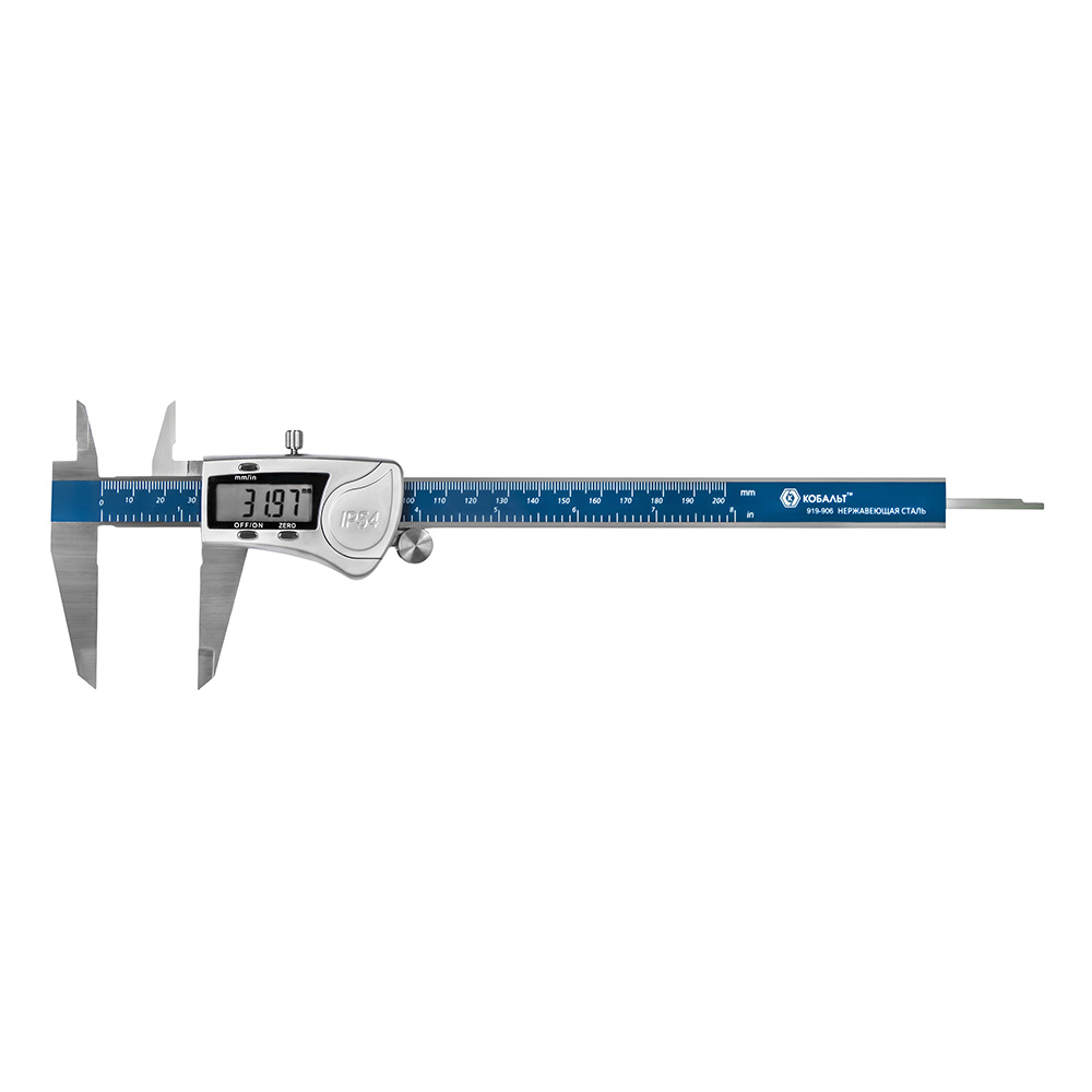 Штангенциркуль КОБАЛЬТ цифровой, ШЦЦ, IP54, откр.типа, плавн.ход, 200мм, точн.0,01мм, глубиномер, корп.и напр.из нерж.стали, кейс (919-906) - цена, фото, технические характеристики