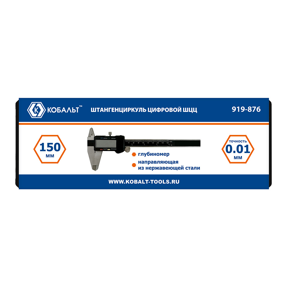 Штангенциркуль КОБАЛЬТ цифровой, ШЦЦ, открытого типа, 150 мм, точность 0,01 мм, глубиномер, направляющая из нерж. стали, кейс (919-876) - цена, фото, технические характеристики