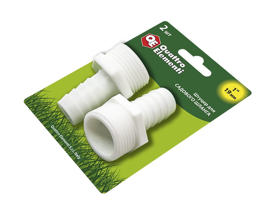 Штуцер для шланга QUATTRO ELEMENTI внеш. резьба 1" - "ёлочка" 19 мм, 2шт, пластик (771-916) - цена, фото, технические характеристики