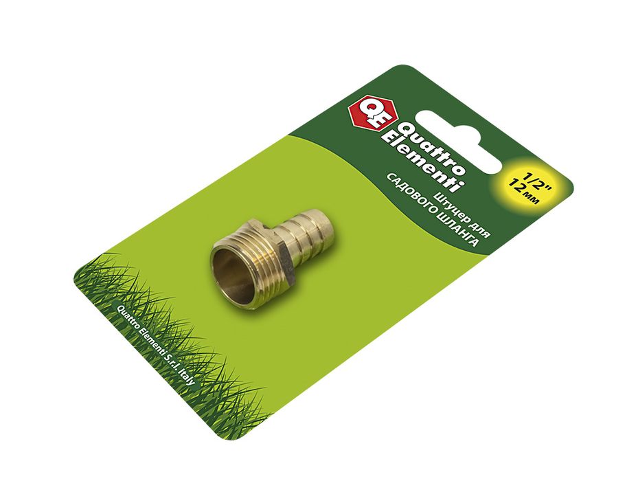 Штуцер для шланга QUATTRO ELEMENTI внеш. резьба 1/2" - "ёлочка" 12 мм, латунь (771-824) - цена, фото, технические характеристики