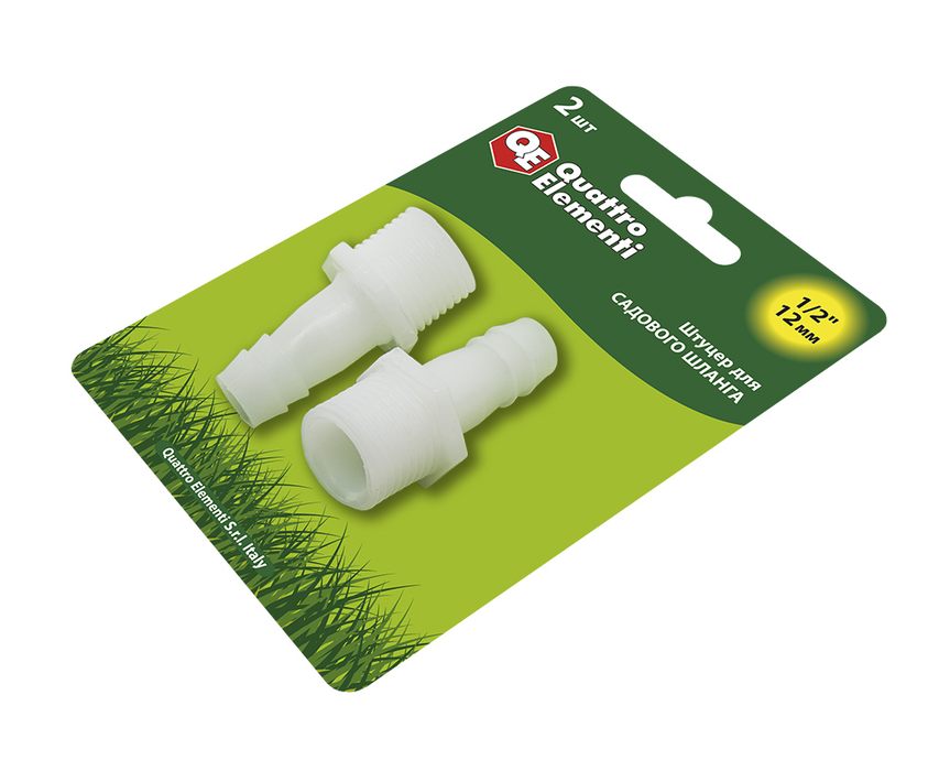Штуцер для шланга QUATTRO ELEMENTI внеш. резьба 1/2" - "ёлочка" 12 мм, 2шт, пластик (771-879) - цена, фото, технические характеристики