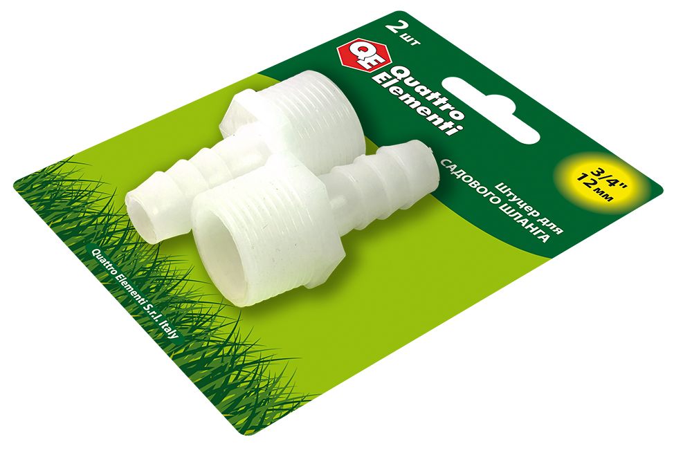 Штуцер для шланга QUATTRO ELEMENTI внеш. резьба 3/4" - "ёлочка" 12 мм, 2шт, пластик (771-893) - цена, фото, технические характеристики