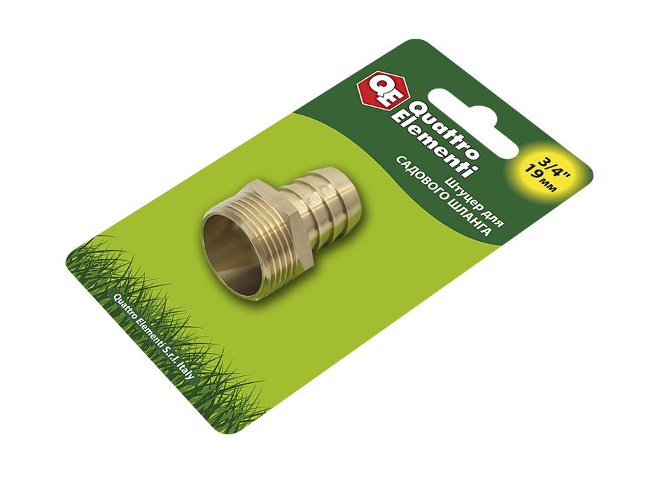 Штуцер для шланга QUATTRO ELEMENTI внеш. резьба 3/4" - "ёлочка" 19 мм, латунь (771-831) - цена, фото, технические характеристики