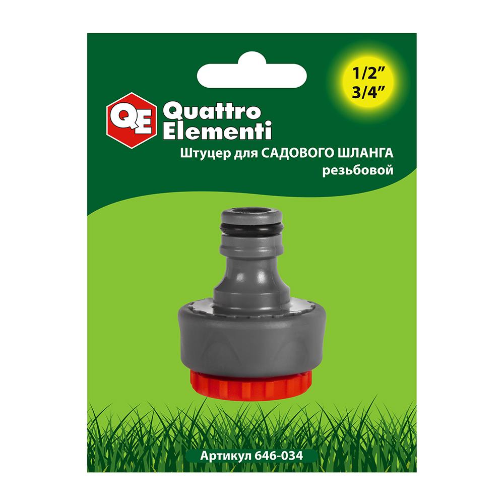 Штуцер для шланга QUATTRO ELEMENTI внутр. резьба 1/2" и 3/4" - БРС папа, мягкий пластик (646-034) - цена, фото, технические характеристики