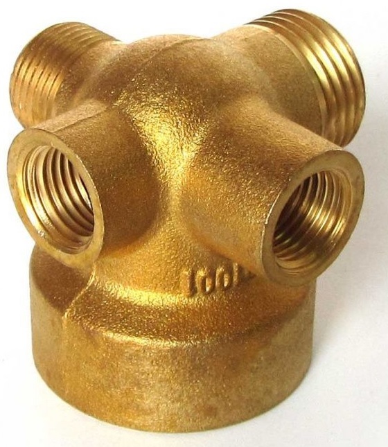 Штуцер UNITED PARTS 5-выводной 3/8"M(реле)×1/4"F(манометр)×1/4"F(пробка)×1"F(фланец)×1/2"M(шланг) - цена, фото, технические характеристики
