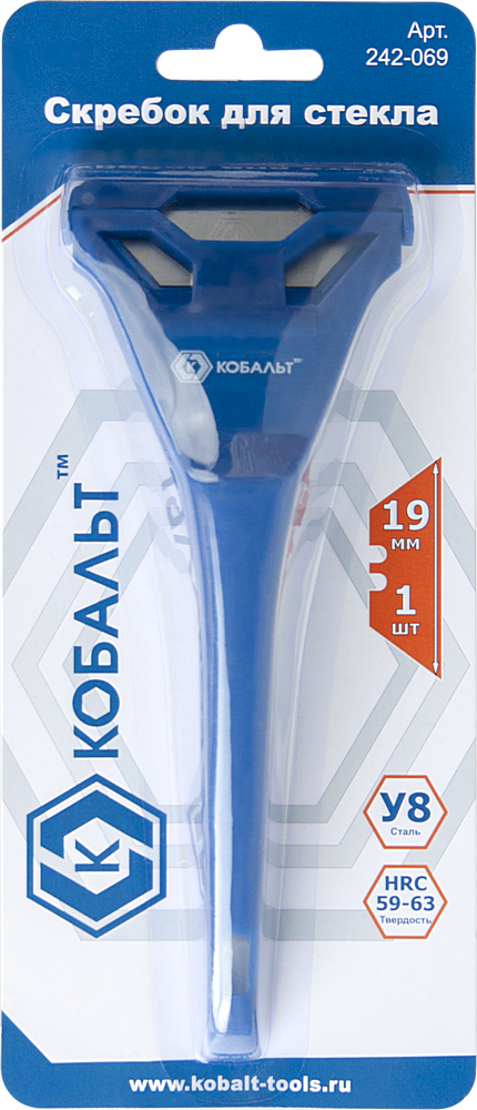 Скребок КОБАЛЬТ строительный, для гладких поверхностей, трапециевидное лезвие 19 мм, корпус из АБС пластика, блистер (242-069) - цена, фото, технические характеристики