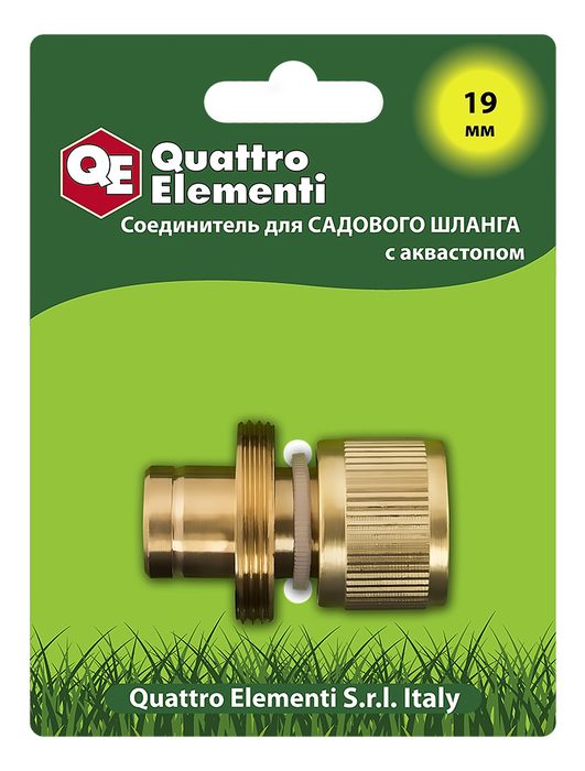 Соединитель быстроразъемный QUATTRO ELEMENTI для шланга 3/4", латунь, аквастоп (246-401) - цена, фото, технические характеристики