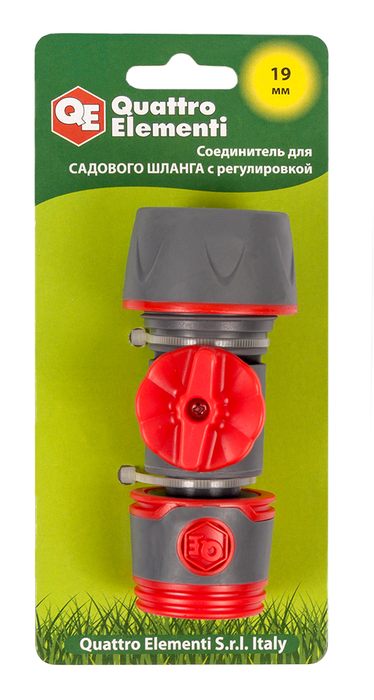 Соединитель быстроразъемный QUATTRO ELEMENTI для шланга 3/4", мягкий пластик, с регулировк (646-126) - цена, фото, технические характеристики
