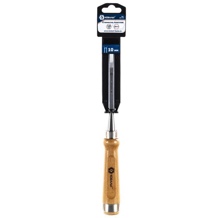 Стамеска плоская КОБАЛЬТ 10 х 140 мм, CR-V, деревянная рукоятка, подвес (245-725) - цена, фото, технические характеристики